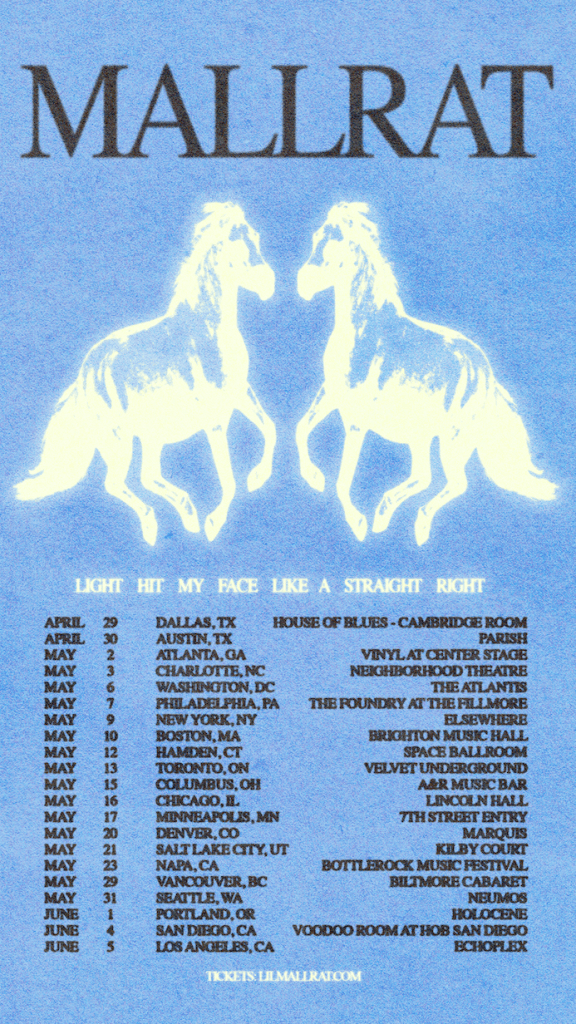 Following an angelic performance on The Kelly Clarkson Show, my favorite Australian pop princess, Mallrat announced that she will be hitting the road in support of her forthcoming album, ‘Light hit my face like a straight right,’ which drops February 14th. YAY!
