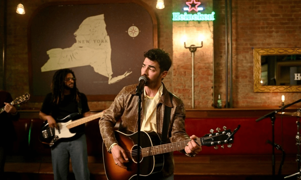 What makes the release even more unique? Joe chose to debut it in the most human way possible, live and unplugged at NYC’s Bleeker Street Bar, in a no-phones-allowed event. The exclusive performance was part of a partnership with Heineken’s new Social Off Socials campaign, which champions in-person connection over digital noise.